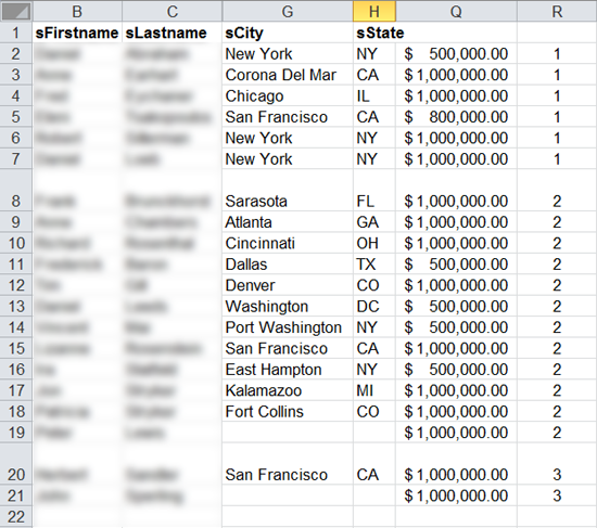 Если досье, собранные партиями на конкурирующих кандидатов, нередко становятся достоянием общественности, такого нельзя сказать о второй бумаге, обнародованной хакером. Второй документ называется «Big Donors» («Крупные жертвователи») и представляет собой список, в котором содержится двадцать одно имя. Люди из списка пожертвовали DNC как минимум $500 000. Бумага содержит информацию о каждом из них.