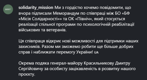 Фонд «Миссия солидарности» был официально зарегистрирован в Украине 11 октября 2023 года.