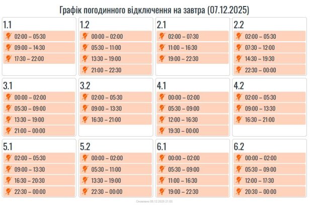 Споживачам рекомендується перевіряти оновлення, оскільки графіки можуть коригуватися залежно від оперативної ситуації.