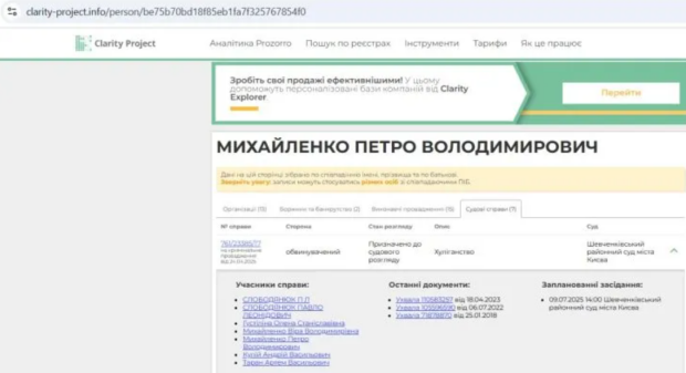 До слова, на майданчику clarity-project.info також вказано, що і раніше у Михайленка були проблеми із законом — три адмінпорушення та стягнення боргу по цивільній справі.