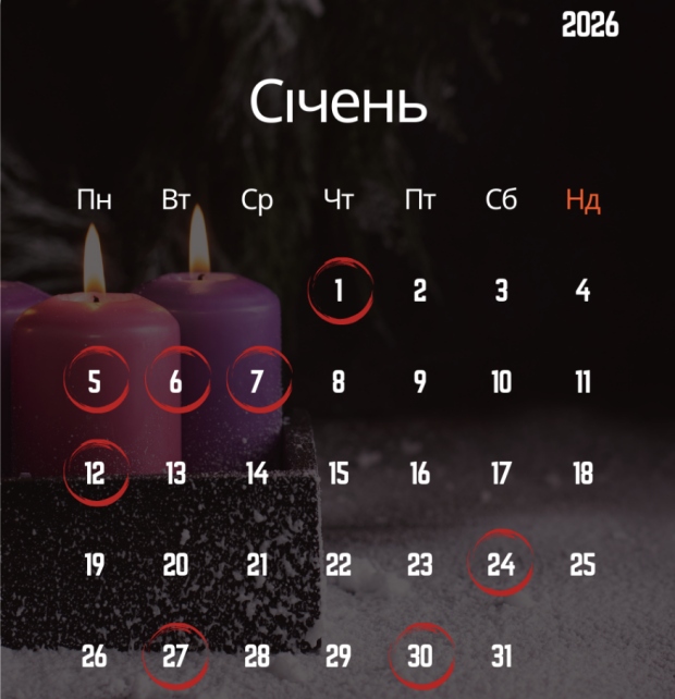 У січні 2026 року, відповідно до нового церковного календаря, православні віряни відзначатимуть низку ключових свят. Зверніть увагу на оновлені дати для Дня святого Василя, Водохреща та свята Тетяни. Дивіться календар в матеріалі Стіна.